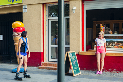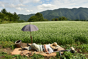 本作の登場人物は全て別の少女ですが、やや遠めの位置から望遠レンズで撮っている、全て縦位置で撮られている点などが共通していることで、作品に統一感が出ています。作品の面白さはいくつかありますが、8枚の写真の組み合わせの面白さも、その1つです。少女が夕日に照らされていたり、持っているものが、人形やスマートフォンなどの今を感じさせるものであったりと、バリエーションに富んでいます。そして何より魅力的なのが、少女の自然な表情が撮られていることです。それらにより、過ぎ行く夏のイメージが上手く醸し出されています。