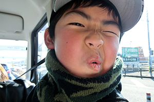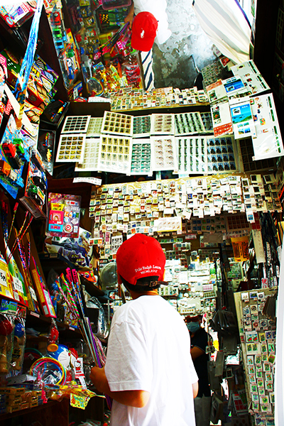 玩具屋、あるいは雑貨屋かもしれませんが、天井までびっしりと並べられた切手や玩具を背景に、花火を手にした少年が上を見ています。この少年の被っている赤いお洒落な帽子をポイントに、広角レンズを使って背景を広く入れたことで、画面の隅々まで緊張感のある写りを演出しています。赤い帽子のほか、玩具などが背景にあることで色彩的にも色鮮やかで、少しノスタルジックな雰囲気もあります。高校生の作者にとっては、昔通った懐かしい場所、あるいは今行っても楽しい場所かもしれませんが、作者の奥深い気持ちが表現された良い写真です。
