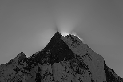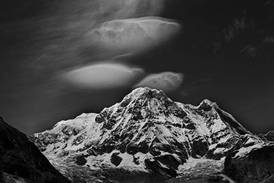 ヒマラヤの山並みをモノクロプリントにして、コントラストなどを絶妙にコントロールすることで、緻密で荘厳な雰囲気を持った作品に仕上げています。A3ノビの用紙を用い、フチなしプリントにしたことで画面が非常に大きく見え、山並みの描写が迫ってくるかのような印象の写真になっています。星の軌跡や日の出のシーンなども迫力あるフレーミングで捉えられており、まるで撮影地の空気感がダイレクトに伝わってくるかのようです。天候や雲の流れ、光の当たり具合といった撮影条件にも恵まれ、山岳写真として完成された作品だといえます。