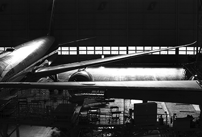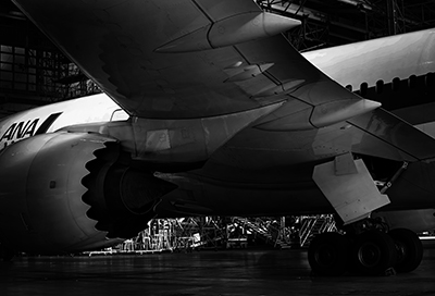 格納庫に収められたジェット機だと思われますが、機体だけでなく周辺の人や外の風景も丁寧に写しているなど、作者の飛行機に対する愛情が伝わってきます。ジェット機の金属の光る質感がプリントの表現とマッチしていて、金属の質感や緻密さの表現に成功しています。屋内で全体にローキーな写真ですが、黒つぶれせずに調子を上手くプリントで引き出していると思います。造形的に計算されて撮られており、完成度が高い作品です。