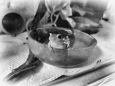 ペットのカエルと過ごした、10年間の記録。オタマジャクシの頃から、可愛いと思い撮り続けている気持ちが伝わってきて、ほのぼのとして微笑ましい作品です。カエルの瞳のアップなどさまざまなシチュエーションで撮られており、まるで心を通じ合わせている恋人同士の記録のようにも思えます。大小さまざまなサイズのプリントで構成され、紙質も画用紙や和紙などを組み合わせていますが、10年間の記録である本作には斬新で、適していると感じます。
