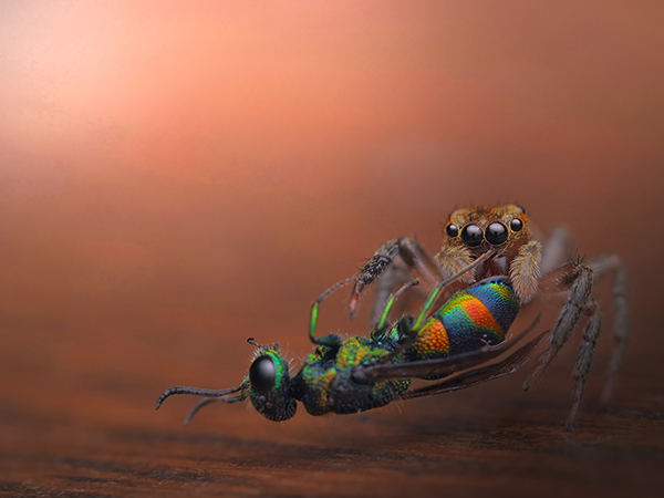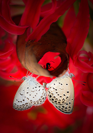 クローズアップで一部を切り取るという物理的な眼差しではなく、小さな生き物に対する愛情が作品全体で表現されています。そのため、蜘蛛に捕えられている蜂さえも可愛く感じられます。本作には生と死のイメージがありますが、独特の昆虫愛が、その悲しげなイメージを超えているのです。その愛情を、背景のグラデーションなどの細部が効果的に引き立てているのも目を引きます。さらに、それをまとめあげる力が、10代の作者にあるのは脅威的。将来、凄い昆虫写真家になりそうな予感がします。