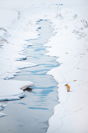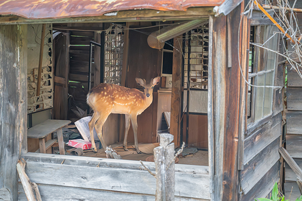 自然に帰りつつある廃屋の中に、鹿が佇んでいる様子を象徴的に捉えた作品。しかも、若い鹿がカメラのほうを窓越しに見つめているという、不思議な状況を作者は絶妙なタイミングで捉えています。その組み合わせは少しショッキングで、あまり見たことのないシーンです。窓枠がフレームのようになることで構図的に整っていて、背景に写り込む破れた障子などによって臨場感も感じられる、インパクトの強い作品になっています。