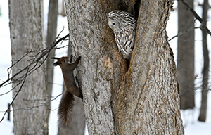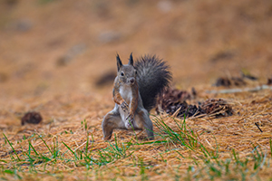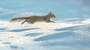 オレンジ色の毛並みを持つ1匹のリスを、丹念に撮影した作品。リスと目が合った瞬間を捉える一方で、ジャンプの瞬間なども捉え、躍動感が感じられます。背景には四季の変化が写り込み、時間経過も感じられます。これらにより、撮影者とリスとの間で信頼関係が築かれ、気持ちが通じ合っているのが伝わってくる作品です。画面内のリスの大きさがほぼ一定で、大きくプリントしたことでリスが等身大に見えるのも面白い表現だと感じました。