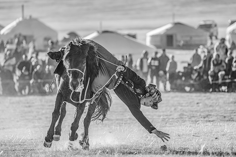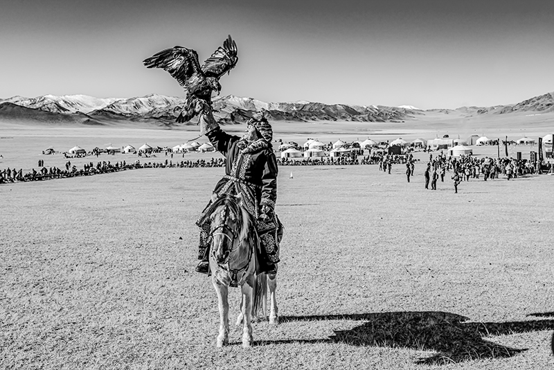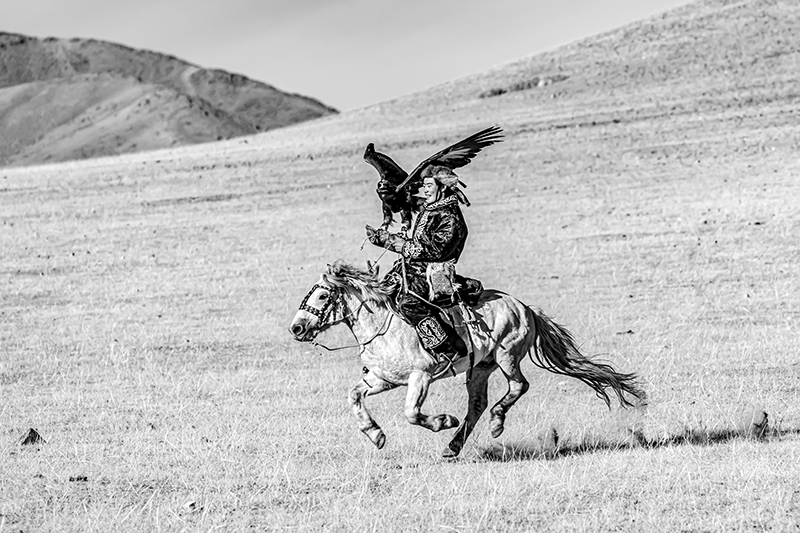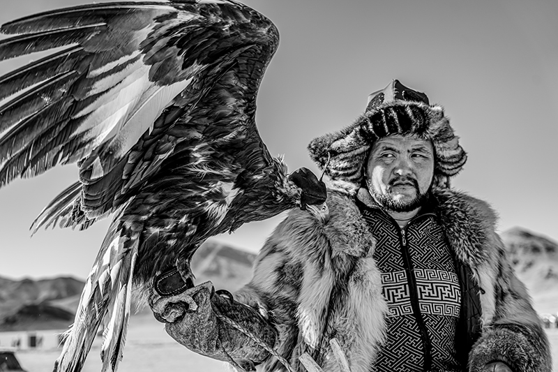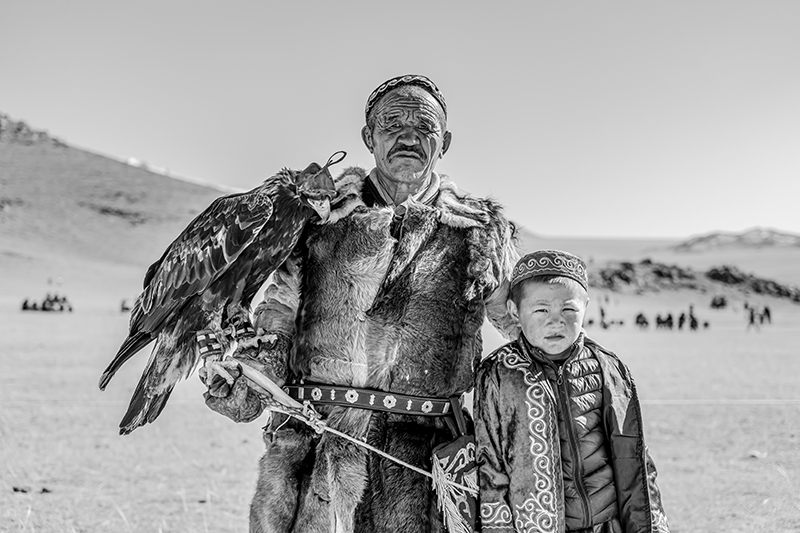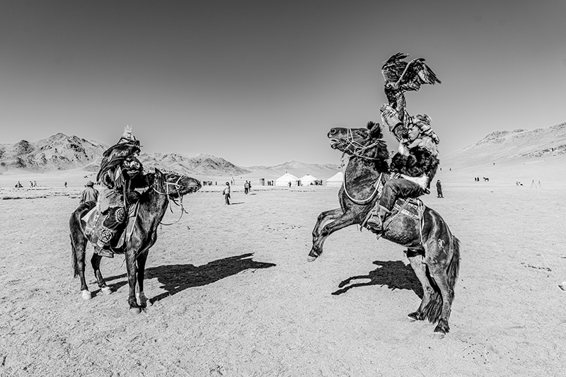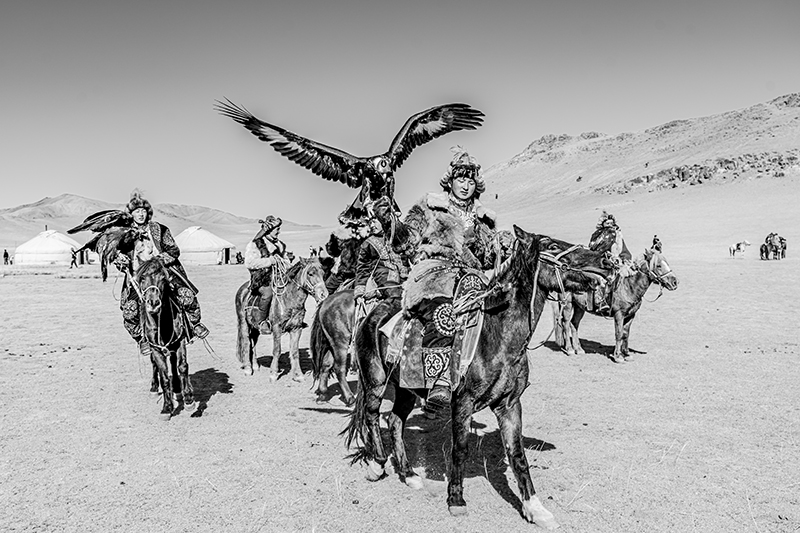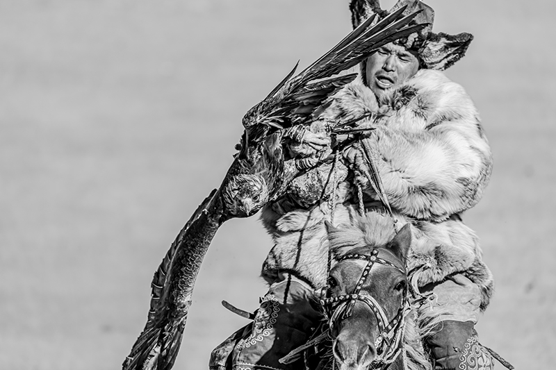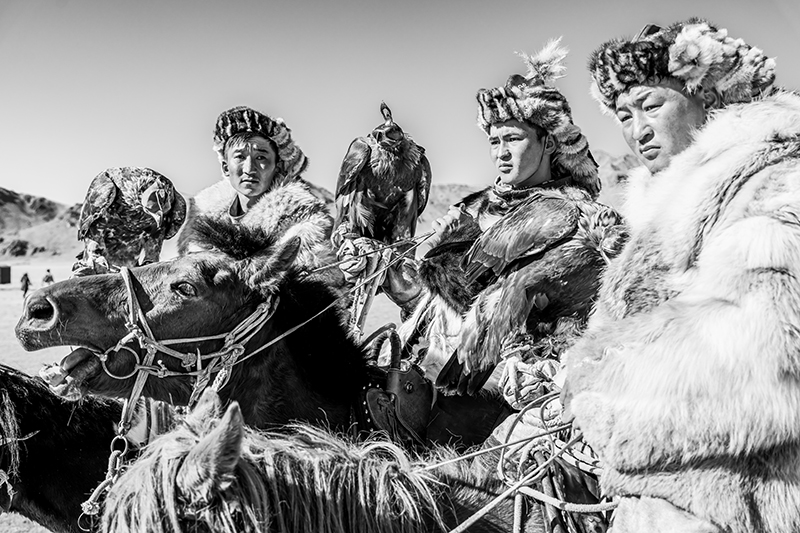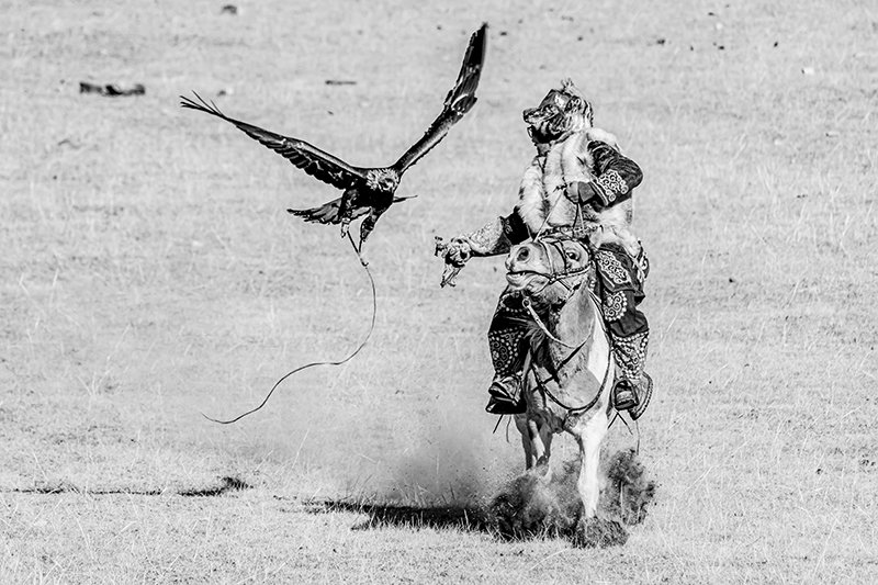 モンゴルのカザフ族のお祭りを撮影した作品です。どれも迫力のある写真で、お爺ちゃんと孫など、人の繋がりが感じられるほか、タカを大切に育てていることなど、文化面も伝わってくる作品です。技術的には、動きのある瞬間を上手く捉えられていて、組写真としても過不足なく上手くまとまっています。全体をモノクロ写真に仕上げたことで、毛皮を使ったり刺繍を入れたりした衣装やタカの羽などの質感描写が目を引きます。空を少し暗めに再現するなどして、澄んだ空気感も上手く再現されていて、重厚で迫力のある作品に仕上がっています。