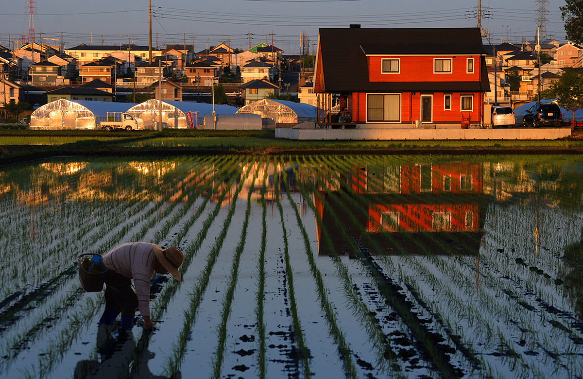 「新居」の建物が一目瞭然の作品です。しかし、新居の手前の田んぼで男性が農作業をしていたり、新居の奥に住宅群が連なっている一方で、その前にはビニールハウスが設置されていたりして、良い意味で農業と住宅が調和しているように感じます。いわゆる日本の都市近郊型の農地を捉えている訳ですが、本作からは、そこでの農業の営みが今後どのように続けられていくのだろうといった農業問題にも興味が向く点でも意義深い作品です。写真には、記録性に基づいた、今の我々の暮らしがどうなっているかを思い起こさせるエモーションがあるのです。