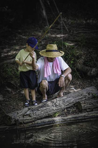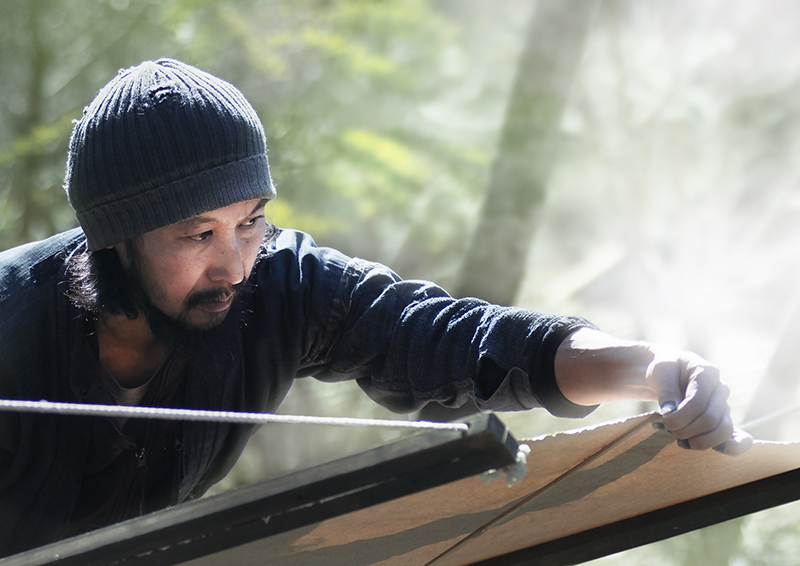 本作は、染色を学んだ青年が里山に帰ってきて、染色を職業にして暮らしている様子とのこと。意志を持って新たな暮らしの拠点を作り、家族と共に自分本来の暮らしをしている姿が、尊く美しく感じられます。我々がこれから未来に生きるには、そうした意志が必要だと勉強させられる作品です。独特のトーンと色合いで4枚の写真が上手くまとめられ、男性の表情からご家族の笑顔までを淡々と捉えていて、素晴らしいと思います。タイトルの差す「君」とは家族であり、この地で営みを続けていくことの明快さが端的に表現されているのが魅力の作品です。