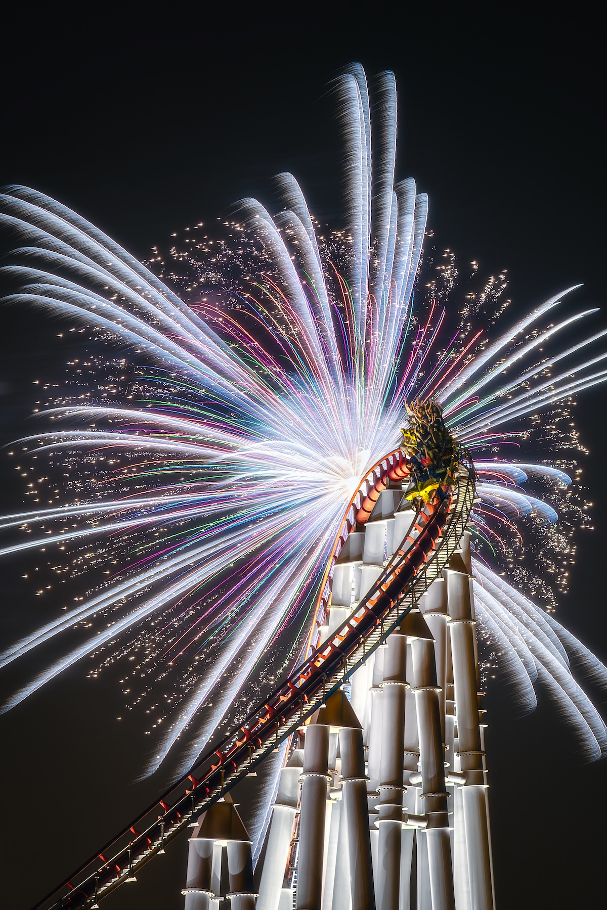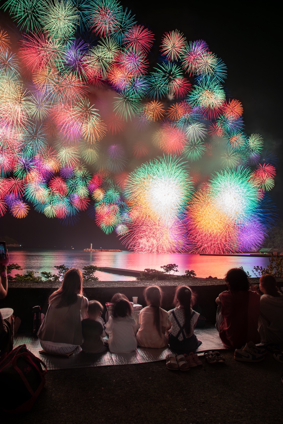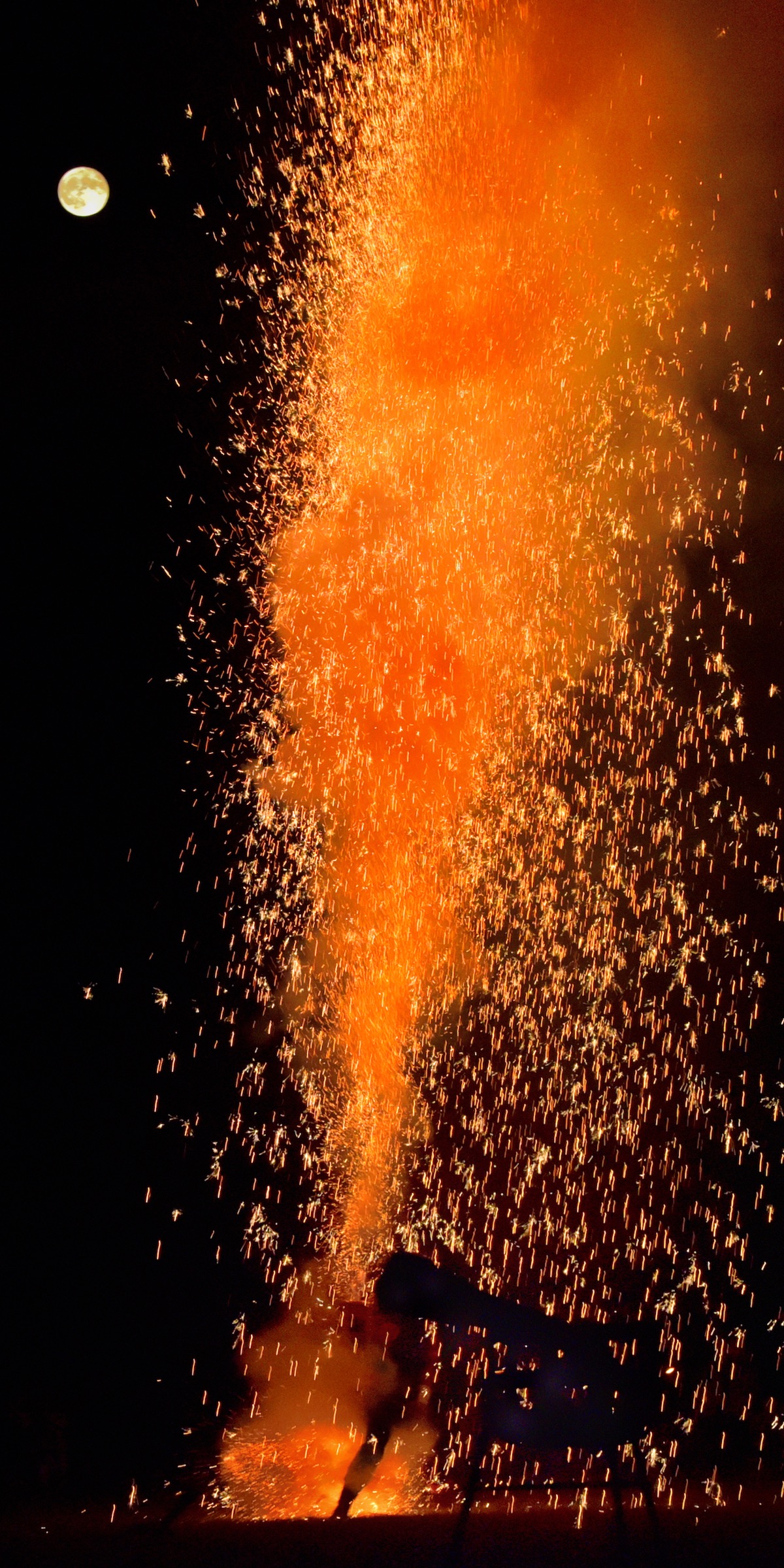 本作は、速水御舟の作品を彷彿とさせる個性的な作品です。ラフな質感の手すき和紙を用いたことで浮世絵のような描写になっていて、かつ、複数枚の組写真としたことで、独特な面白さが出ています。しかも、火花の細かいディテールまで写っていて、長さのあるプリントにしたことで、床の間や美術館に飾っておけるような作品に仕上がっています。様々な工夫と計算をして世界観を作り出しているのが伝わってきて、見れば見るほど、その世界観に引き込まれる深みのある作品です。