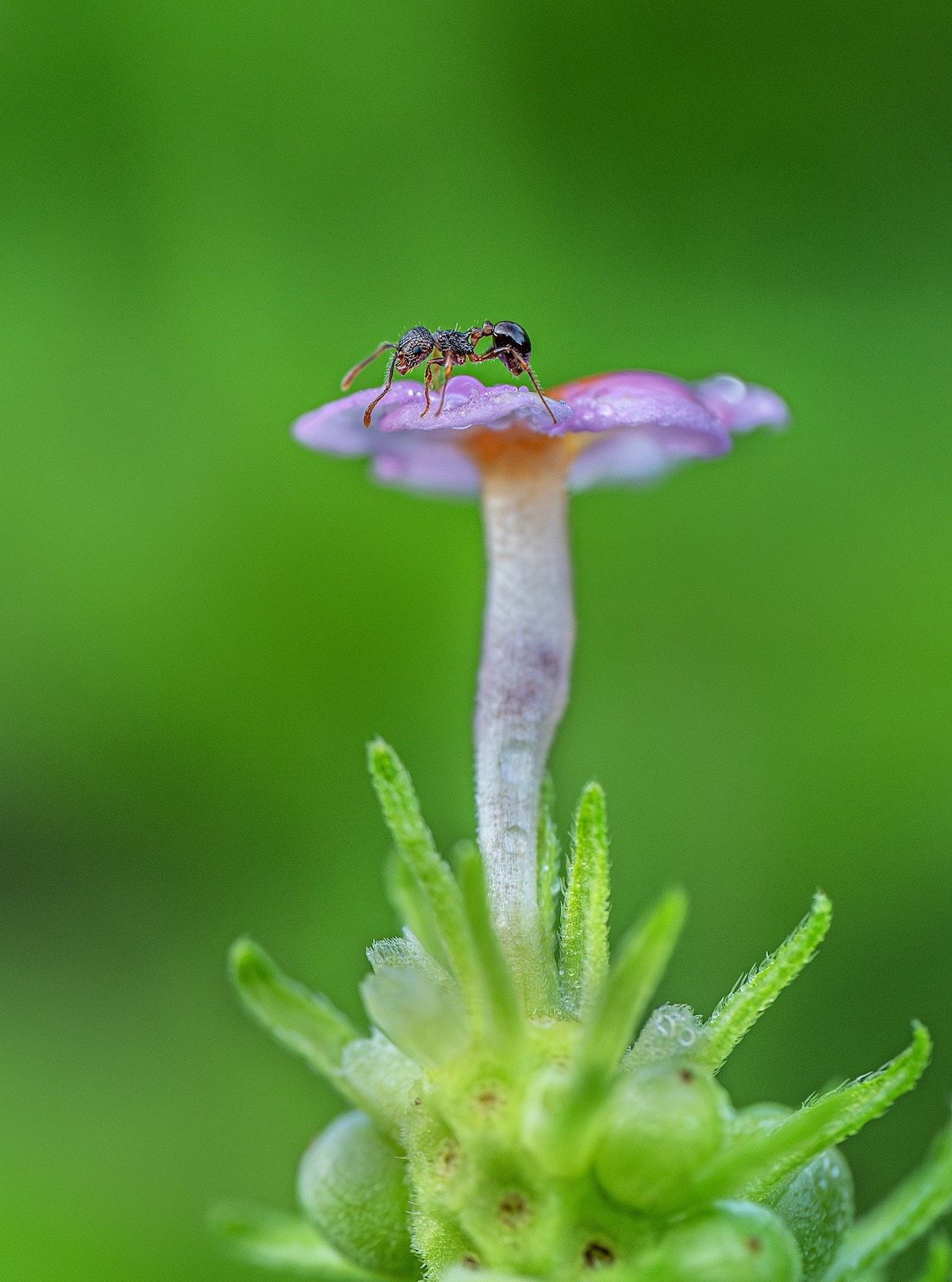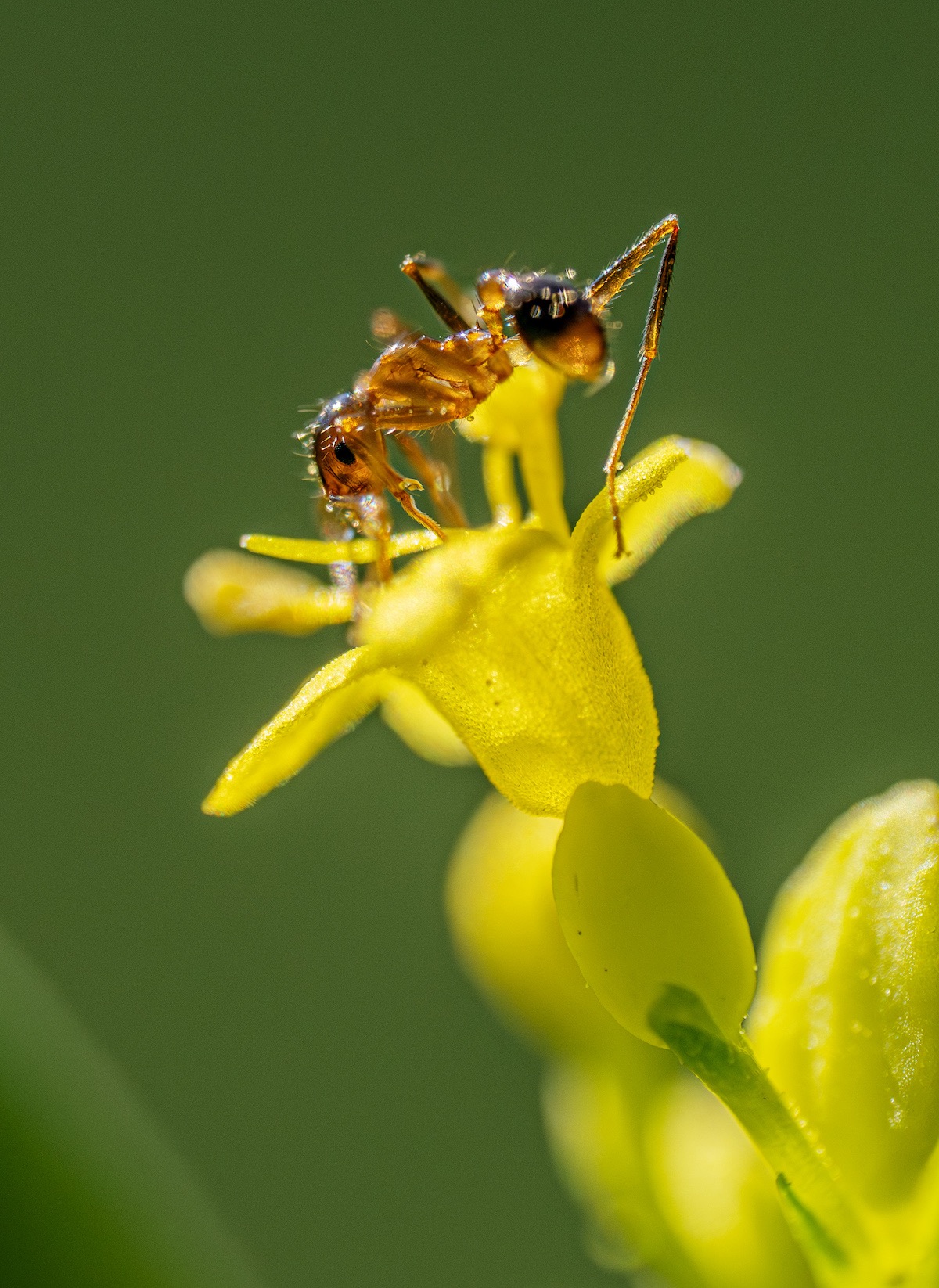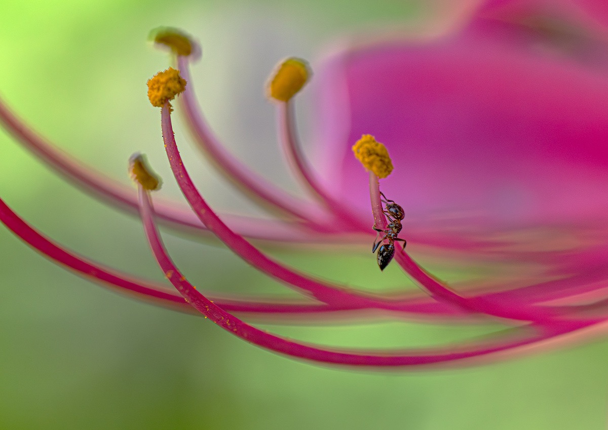 アリが原寸大よりも大きくプリントされているのが面白く、見ている人がアリになったかのように感じられるユニークな作品です。光の扱い方が上手く、逆光で透けたように感じられるのが新鮮。アリの質感描写に優れ、まるでアニメーションで書かれたような色味も個性的です。マクロレンズだけでなく広角レンズも用いられ、画角の違いや寄り引きの差によって独特な世界観を上手く作り出しています。どのようにピントを合わせてシャープに写したのかわかりませんが、その技術力も注目に値します。アリの世界に入り込んで撮っているのが伝わってくる、観察力と情熱に満ちた作品です。