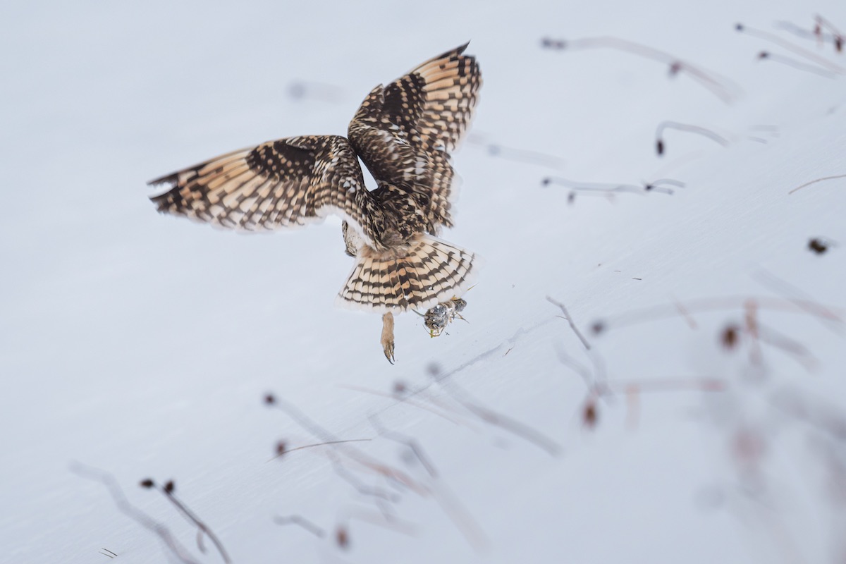 フクロウの魅力だけでなく、空間の取り方や背景のグラデーションによって、自然の雄大さも感じられる作品です。フクロウの後ろ姿や鋭い目、羽ばたいている音が聞こえてきそうな写真など、組み合わせが上手く、4枚という構成枚数も本作に最適です。望遠や超望遠レンズでの撮影だと思いますが、フクロウの様子が極めてシャープな一方で、背景のボケが美しく仕上がっているのも目を引きます。プリントにA3ノビのフォトマット紙を使ったことで、格調高い作品に仕上がっています。