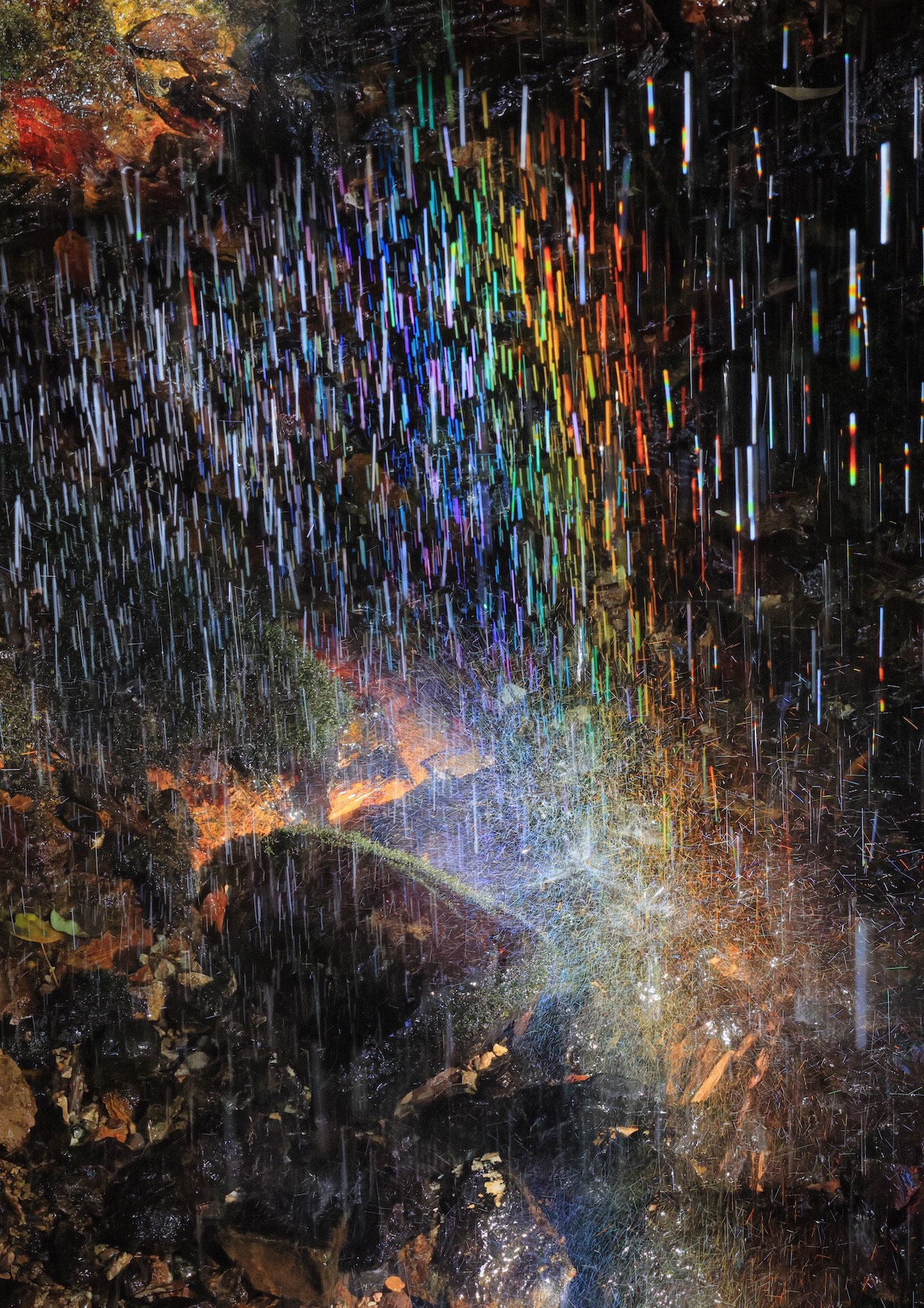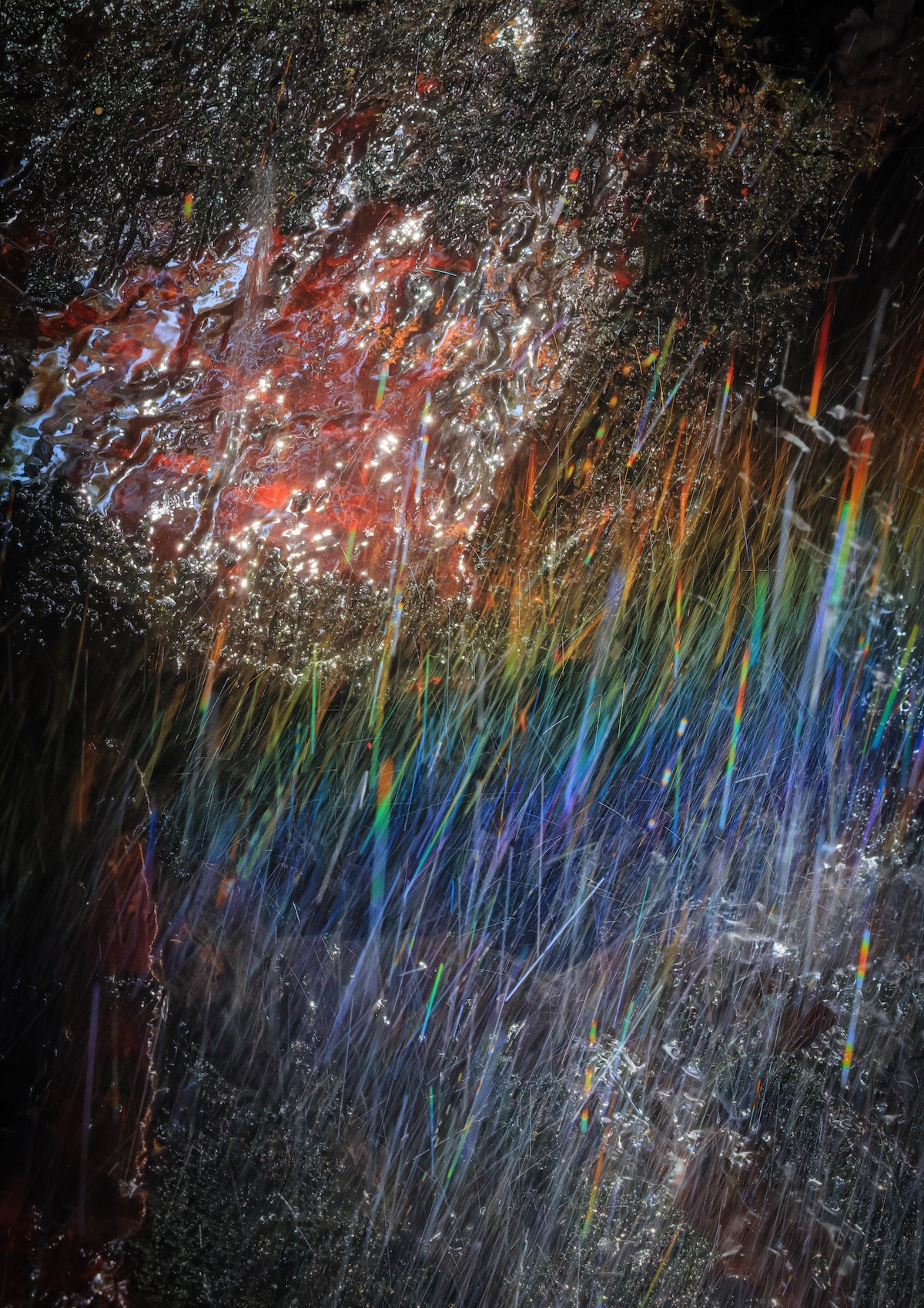 島根県出雲市にある「虹が滝」。出雲と聞くと神々しさを感じたり、歴史とともに、聖なる時間や空間のイメージが働きます。ましてや、虹がこのように捉えられるとしたらやはり摩訶不思議な場所として認識したくなります。そういう力がもともと自然界に備わっているのでしょう。「見えないものを見ようとする」、見えてきた現象に限りないイメージを与えているのが本作品。プリントは虹の色を少し強めていると思いますが、シャドー部の岩肌の質感などが出ていてバランスがとれています。