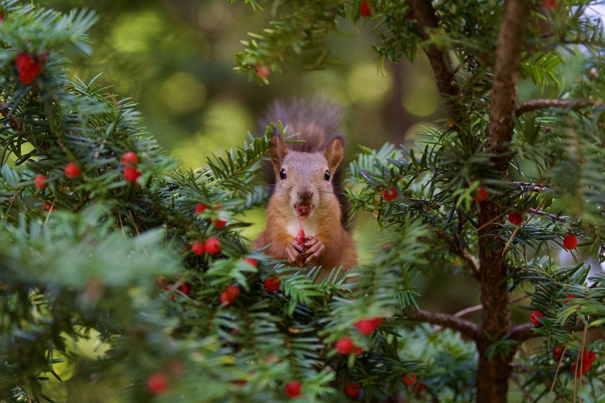 この作品はクリスマスカードとして贈ってほしい作品となりました。可愛いカメラ目線のリスがドンピシャのタイミングでこちらを見ているところを捉えたのもお見事ですが、ヒイラギの赤と緑が色彩的に効いており、やわらかでキラキラした玉ボケがよりクリスマス感を演出しているように思えました。前ボケもうまく効いており、奥行き感を感じられ木々の向こうからうっかり目があってしまったような感覚にさせてくれます。ぱっとみて可愛い〜という声が漏れる作品です。