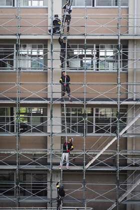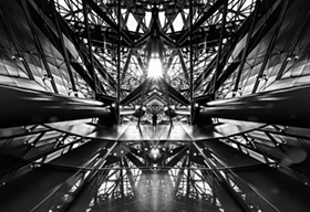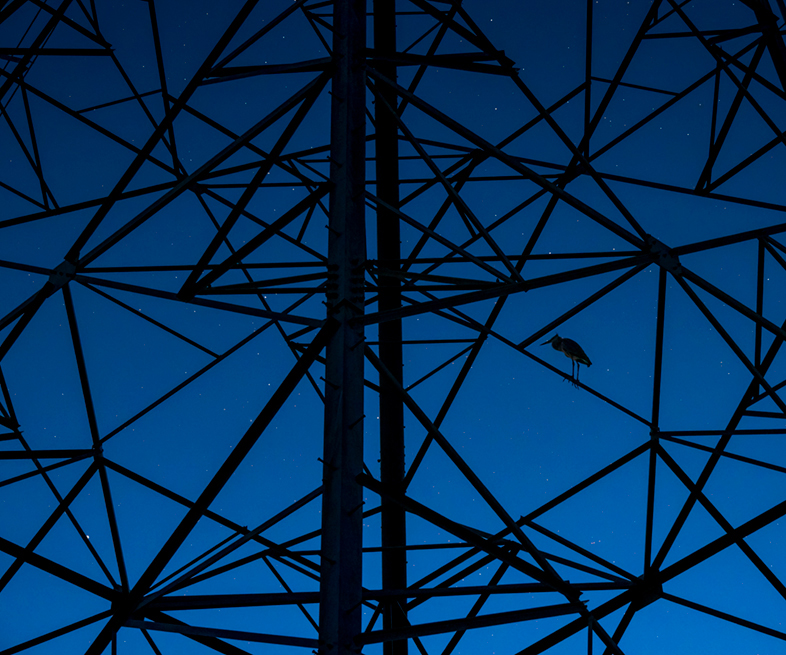 どういう経緯で、この素敵な光景を写真に収めることができたのだろう。素晴らしい作品を見ながら、じっと考えてしまいました。画面のなかにおける鳥の大きさはとても小さく、とうてい目立つことはない状況なのに、暗い鉄骨のなかで、鳥の存在感がダイレクトに写真を見る人に伝わります。空と鉄塔と鳥しか写っていない、とてもシンプルな構成ですが、画面のなかの無駄な空間がまったくない優れた構図に心奪われました。