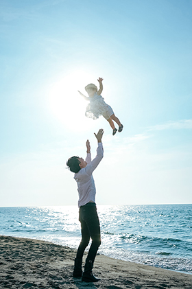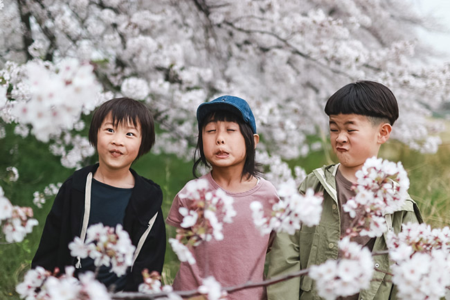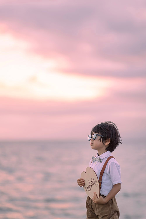 柔らかな夕陽が照らす男の子の表情がとても美しい一枚です。縦位置で撮影することで、夕陽のグラデーションが奥に広がり、男の子の目線の先に何が見えているのか想像を膨らませたくなります。とてもシンプルな構図ですが、そのシンプルさから「Happy Birthday」のプレートを持った、男の子の成長に目を向けたくなります。全体的にマゼンタをプラスにし、温かみのある柔らかなトーンで仕上げたことにより、男の子に対する撮影者の愛情が一枚の写真に込められているようです。