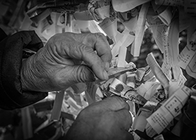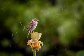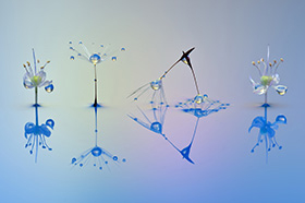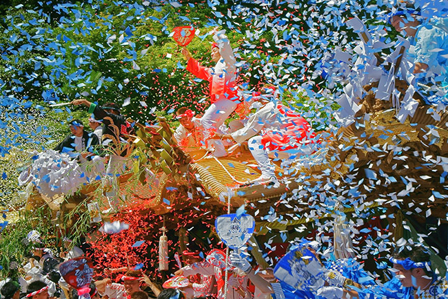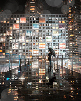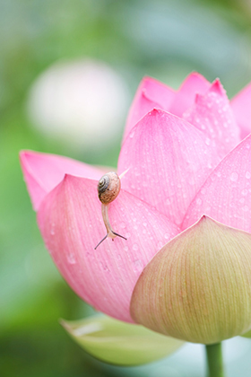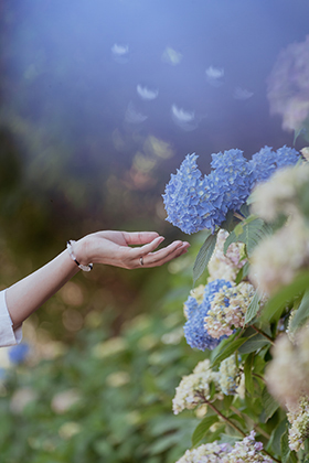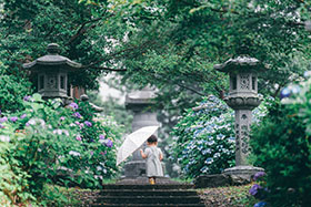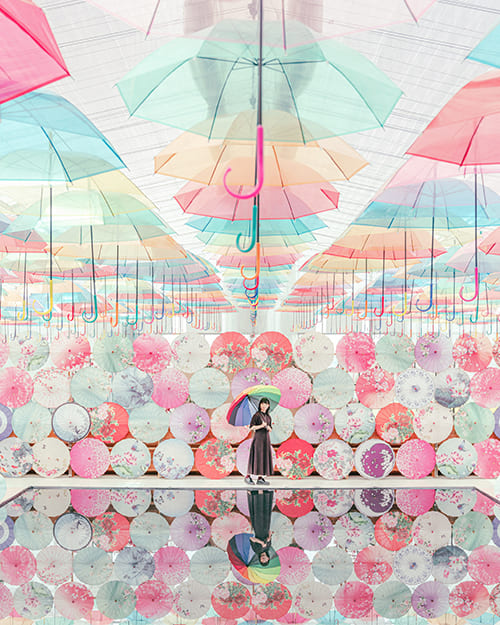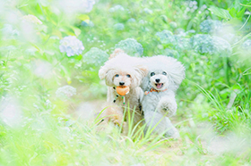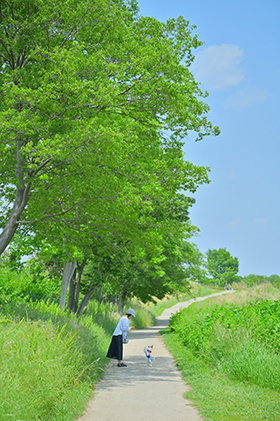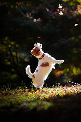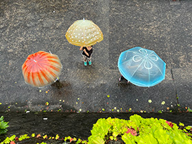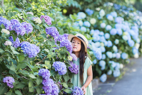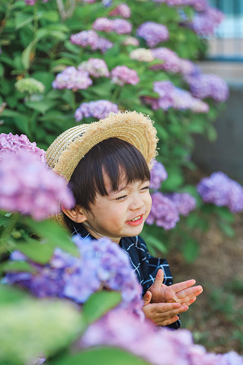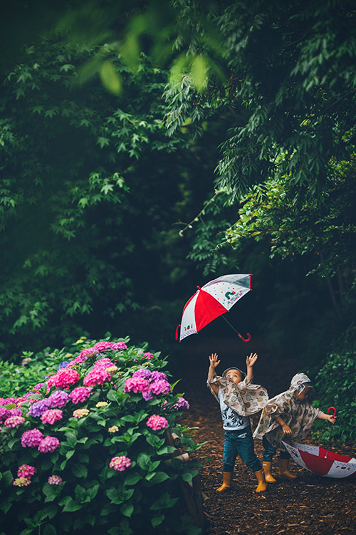 子供がやんちゃに遊ぶかわいらしい姿と雨の湿度を感じるような絵作りがとても印象的です。二人の子供の表情を大きく切り取るのではなく、紫陽花や前ボケの葉などを入れ込んだことで、一枚の写真から雨でもワクワクと遊ぶ子供の姿と、その場の空気感まで写っています。少し暗めに仕上げることで、色がしっかりと出やすくなります。それにより、全体的に深みのあるトーンの緑の中に、紫陽花のピンクや傘の赤、黄色の長靴などの鮮やかな色が引き立っています。瞬間の捉え方、背景の切り取り方、雨の湿度や被写体が浮き立つようなトーンへの仕上げ方、3つのバランスがとても良い一枚です。