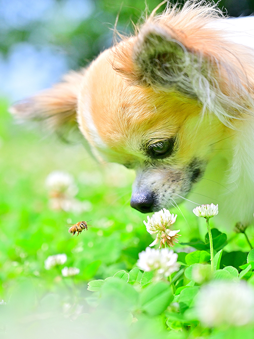 この作品を見た瞬間、メルヘンの世界に迷い込んだような心地よさがありました。でもよく見たら、動き回るワンちゃんと、飛び回るハチという予測不能な被写体を相手に、どうやってここまで完成度の高い作品を撮ったのだろう?という驚きも感じました。いつ現れるかわからない奇跡の瞬間を写し止めるテクニックと、写真の力を強く感じることができました。