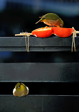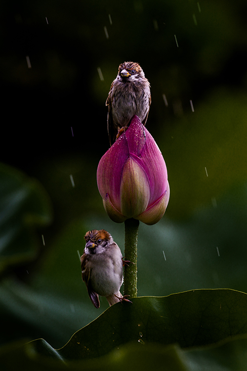 プリントされた写真は単なる紙ですが、見た瞬間に雨の冷たさや、スズメの温もり、そして生命力の強さを、ひしひしと感じました。とにかく派手な発色が好まれるこの時代に、質感を重視した重厚なプリントにも、大変好感が持てました。最高の瞬間を待つ忍耐力、そしてその瞬間を的確に伝えるための、精緻な構図。圧倒的な存在感を持つ、素晴らしい作品です。