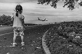 どんな人が乗っているの?どこに向かっているの?この写真一枚が、見る人の想像力を刺激して、さまざまなストーリーに発展していきそうな、素晴らしい着眼点の作品です。よくよく見ると、どうやって撮影したのか不思議なシチュエーションなのですが、そんな推測も無粋になるような、ピュアな感覚が眩しい作品です。