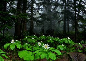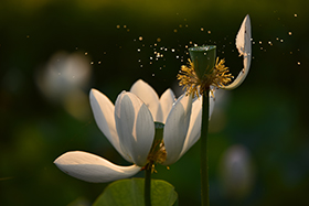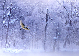 作品の主役であるビヨウヤナギの蕾が、まるで羽を広げて飛び立とうとしているかのように見えます。人によっては蝶々に見えたり、白鳥に見えたりさまざまだと思いますが、その繊細で美しい自然の造形に、うっとりとしました。使い方を間違うと陳腐なイメージになりがちなソフトフォーカスも、この作品にはベストマッチ!メルヘンチックな写真を、主張しすぎない白フチで飾ったプリントには、ずっと見ていたくなるような魅力があります。
