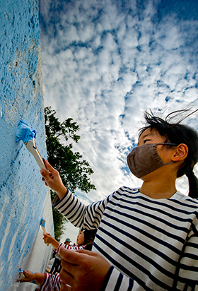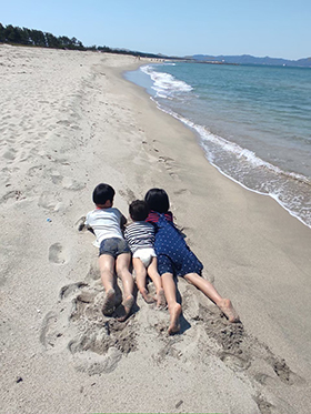 写真を見た瞬間に、衝撃が走りました。まるで考え抜かれた広告写真のような、完成度の高い作品に、目が釘付けになりました。特に子どもたちの影のカタチが素晴らしい!パステル調の背景は、いったいどこなのか?子どもたちはプロのモデルさんなのかな?ポーズはどうやって指示したんだろう?長年プロとして作品を撮ってきた僕の頭は???だらけになりました(笑)。爽やかで、上品で、誰もを惹きつける魅力がある作品です。