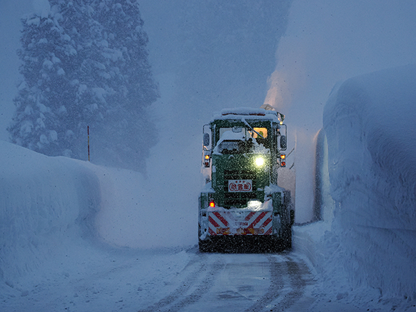 雪国の生活道路を確保するため、早朝2時から除雪作業をする人達。昨年は、近年稀にみる豪雪でした。この朝も、降り頻る雪に挑む除雪作業に感謝の気持ちを込めて撮影しました。