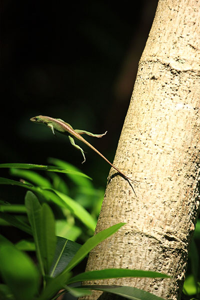 サイパンでトレッキングに参加している時に撮影しました。トカゲが抜群のタイミングでジャンプしてくれて面白い作品になったと思います。