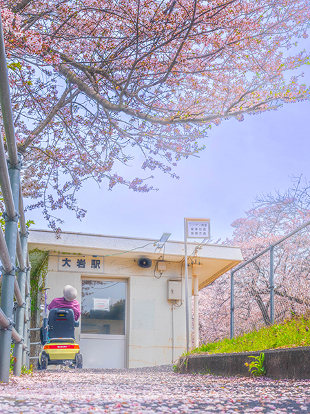 今年の春、初めて訪れた大岩駅。プラットホームまでの坂道を電動カートにのったお年寄りが通りすがり『今年は来るのが少し遅かったね』とぽつり、そして桜をみあげ暫く立ち止まっていた。その姿が昨年亡くなった母の面影と重なった。