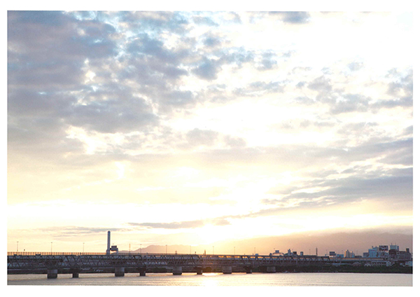「明日の青空」って素敵な言葉ですね。目が開けられないくらい眩しい夕日ですが、写真に撮るとその印象が弱まる傾向です。ところがこの作品はその感じがそのまま再現され、プリントも眩しく見えるのがユニークだと思いました。