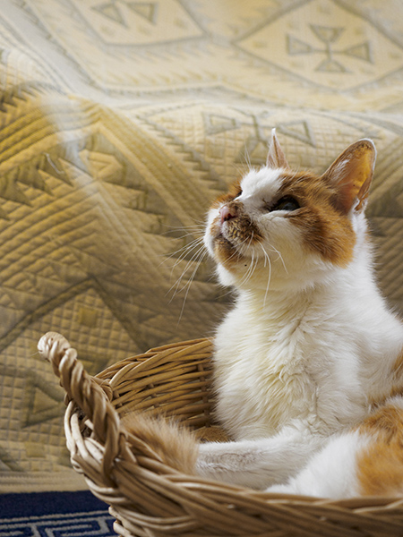 被写体である飼い猫の視線や落ち着いた様子から、作者と猫の信頼感が伺えます。今はなき猫に対する悲しみはさることながら、作者が写真を習うきっかけを作ってくれた飼い猫への感謝と今でも思い続けている愛情が表現されています。