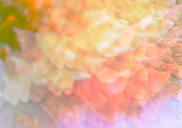 画像を重ね、抽象的な雰囲気を感じさせるのとともに、淡く美しい色合いで構成されています。ボケてはいますが花の造形は残していて、眺めているうちにどんどんと優しい夢の中のような世界に引き込まれていきました。