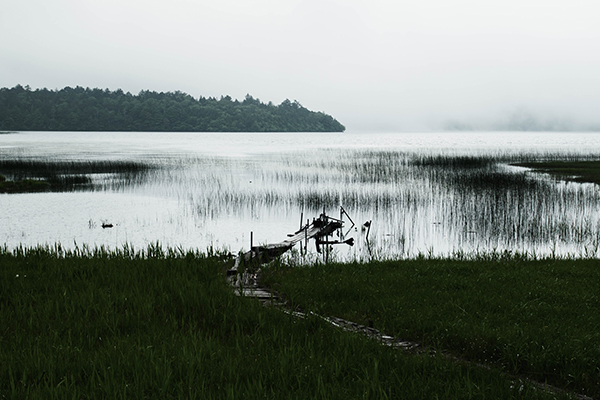 尾瀬沼ではかつて「ぽんぽん船」と呼ばれる渡し船が行き交い人で賑わっていた。自然保護の歩みの中でその役目は終え、今、霧の中に朽ちた桟橋だけが残る。そこには、失われた賑わいの余韻が静かに漂っている。
