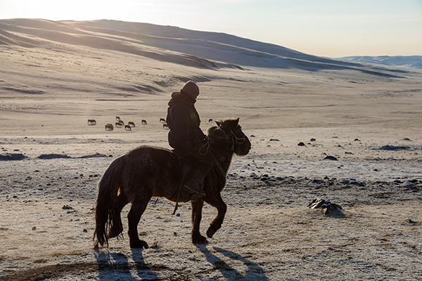 朝は-20℃以下になる冬のモンゴルで、遊牧民の家にホームステイしました。早朝から家畜の世話をしているお父さんの姿が美しかったです。