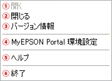 | ※タスクトレイメニューとは、タスクトレイに常駐している「MyEPSON Portal」のアイコンを右クリックすると表示されるメニューです。 |