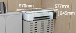 一般的なオフィスデスクにも置けるコンパクトサイズのため、オフィスや店舗で場所をとらずに新しいビジネスを始めることができます。4.3インチの大型タッチパネルでプリントまでのガイドや消耗品の残量、エラー状況について直観的な操作で確認が可能です。
