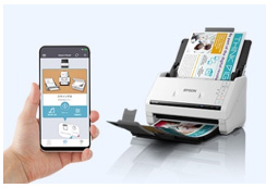 スマートデバイスアプリケーション「Epson Smart Panel」に対応しているので、PCを介さずにスマートデバイスから直接スキャンが可能です。外出先でのスキャンや、リモートワークでのスキャンなど、より幅広い用途にお使いいただけます。