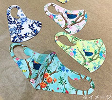 無地の布マスクに、エプソンプリンターで出力した模様を転写し、オリジナルマスクに仕上げていただくワークショップです。模様は、鷺森アグリさんのデザインを使用します。