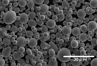 エプソンアトミックスでは、高周波炉により溶解した金属に高圧水を当てて霧状に飛散させ、それを急速冷却させる高圧水アトマイズ法※3に独自の技術を加えることで、ミクロン単位という微細サイズであり、かつ成分・特性が均一で安定した微細合金粉末を提供し、市場で高い評価を得ています。
