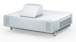 明るさは、『EB-L250F(ホワイトモデル)』『EB-L255F(ブラックモデル)』が4,500lm、『EB-L200W』は4,200lmと、中規模会議室から大会議室・ホールまで投写可能な明るさを備えています。レーザー光源採用により、明るく鮮明な映像が大画面で投写できます。