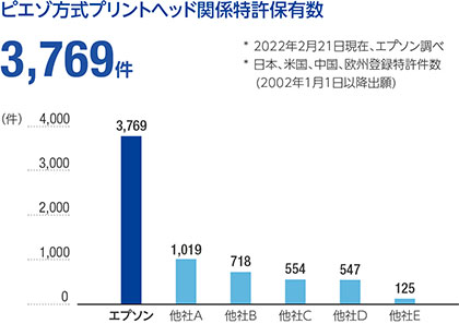 ※:2022年2月21日現在、エプソン調べ。日本、米国、中国、欧州登録特許件数(2002年1月1日以降出願)