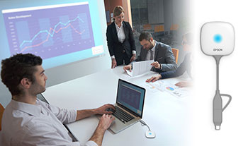 PC画面をワイヤレスでディスプレイ機器に送信できるプレゼンテーションシステムです。PCにトランスミッターを接続し、画面上のアイコンをワンクリックするだけで簡単に映像をディスプレイ機器に送信できます。1人の画面のみでなく最大4人の画面を同時にディスプレイ機器に表示できるため、複数の資料を活用した会議やワークショップが行えます。このシステムを導入することで、1人が一方的にプレゼンテーションをする会議から、参加者同士のコラボレーションを重視し、ビジネスの創造性を高める会議スタイルへの移行を加速します。