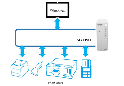 『SB-H50』は、さまざまなタブレット端末やPOS周辺機器を接続し制御を可能とします。