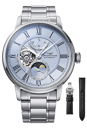 オリエントスターのアイコンであるパワーリザーブ表示、月齢と指針式の日付カレンダー表示、機械式ムーブメントの一部を見せるセミスケルトンの3つを組み合わせた「メカニカルムーンフェイズ」は、2017年の誕生以来、その独創的なデザインと機能が注目を浴び、オリエントスターの代表作として世界の時計愛好家に親しまれてきました。また、デジタル化が進む社会の中でゆったりとした時間を提供する時計というコンセプトも機械式時計の価値を大いに高めました。