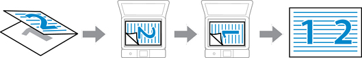 A3/B4原稿二つ折りコピー機能を搭載、大きなサイズの原稿も二つ折りし、裏表二回に分けてスキャンすることによって等倍でコピーできます(注3)。学習教材に多いB版サイズをはじめ、資料作成などのテレワーク業務まで、家庭内での幅広い用途に対応します。