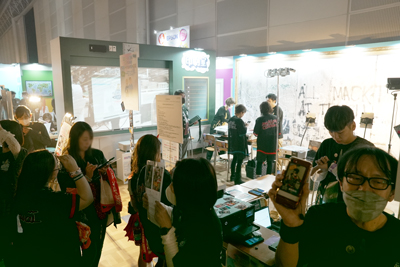 学校生活をテーマにした「推し活応援部」ブースでは、「特攻変身教室」「図工室」「美術室」など、教室をイメージしたコーナーを用意しました。どのコーナーでのサービスも、デザインはお客様自身で行い、ご自身にとって唯一無二のグッズを制作していただくことで、"推しとの思い出を形に"することを後押ししました。