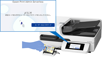 エプソンの複合機プリンターと共通のユーザー認証ソリューション「Epson Print Admin Serverless」と「Epson Print Admin」に対応。複合機とスキャナーの両方を一つのツールで設定でき、利用者ごとに使用できる機能やデータ送付先を指定することで、誤操作を防止しセキュアな作業環境を提供します。