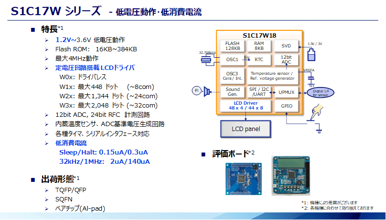 低電圧動作の16bit MCU、S1C17Wシリーズのラインアップはこちらを参照ください。