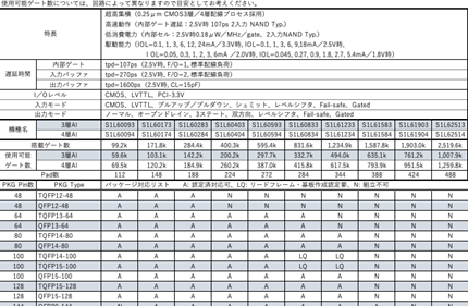 ASIC「S1L60000」シリーズのスペック、機種一覧、PKGリスト、入出力バッファ一覧のエクセル表