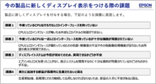 自社製品(測定器やFA機器など)に新しくディスプレイ(表示部)を付与するときの4つの課題とその課題を解決するエプソンのLCDC活用方法についてまとめた資料です。