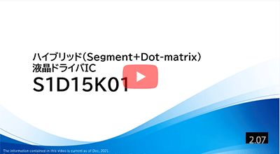 S1D15K01シリーズは、マイコンと直接接続が可能なハイブリッド液晶ドライバICであり、セグメント表示とドットマトリクス表示を1つのLCDパネルに同時に表示可能です。セグメント専用駆動回路および、ドットマトリクス専用駆動回路を1チップに搭載しており、セグメントエリアとドットマトリクスエリア間の駆動電圧差による表示不具合の解消、高コントラスト表示の実現、モジュールコスト低減に貢献します。 またS1D15K01シリーズは、温度センサ回路を内蔵しています。これにより、広い温度範囲で最適なLCDコントラストが得られるようにシステムを構成できます。