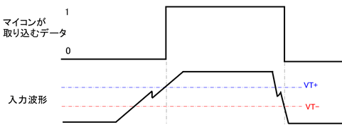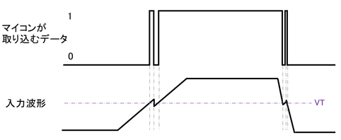 入力波形とマイコンに取り込まれるデータ例(シュミット入力回路)